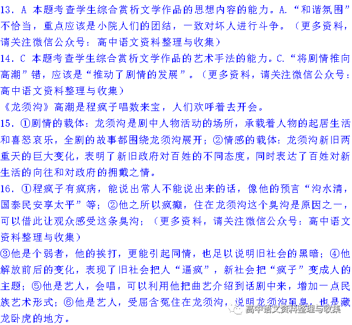 15.有人说:“龙须沟”是剧情与情感的载体。请结合剧本谈谈你对这种观点的理解。