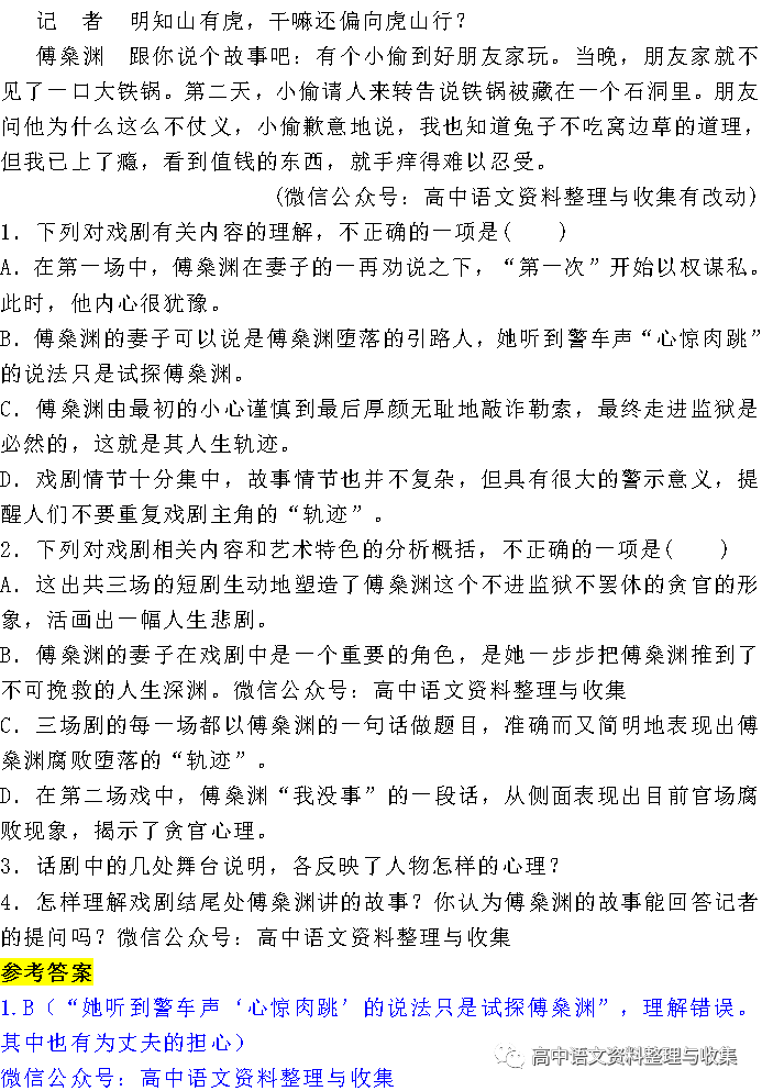 戏剧中人物的语言富有强烈的动作性,不仅展示出人物丰富的内心世界,而且能够引起他们的外部动作。如下题:
