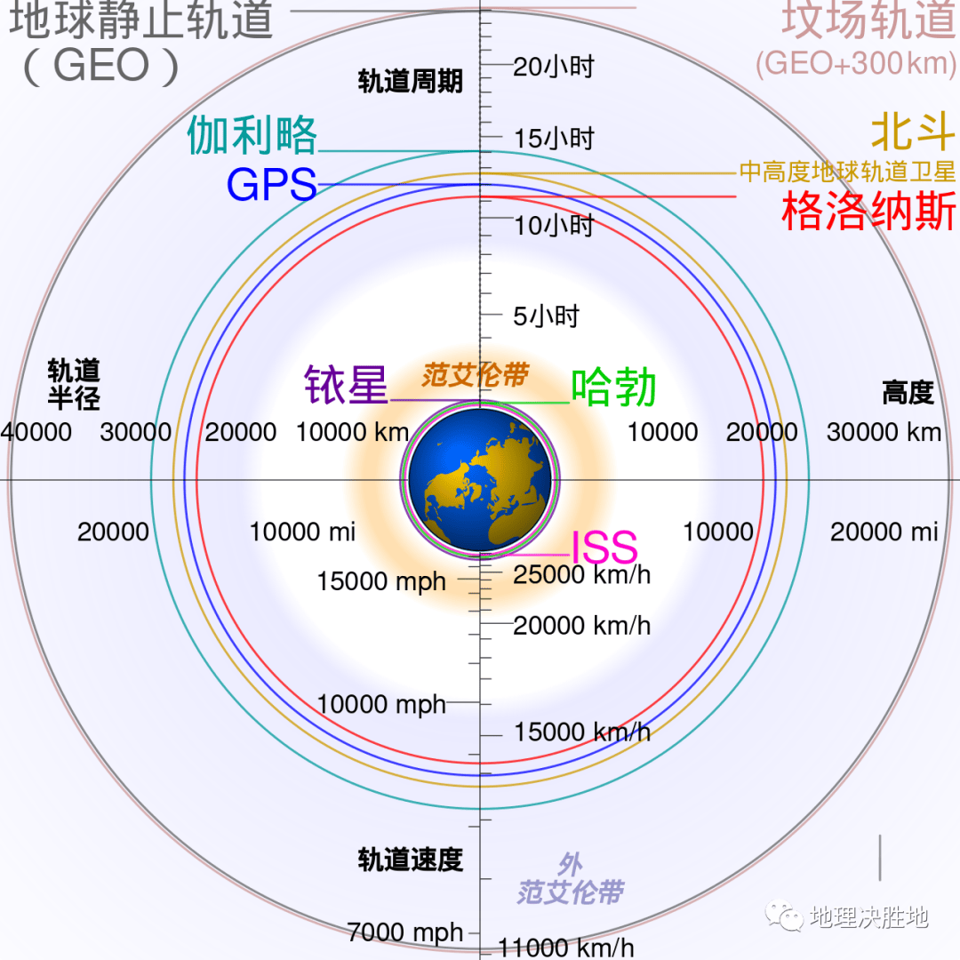 在中高度轨道运行的其他卫星,包括格洛纳斯星座(Glonass,海拔19100km)和伽利略星座(Galileo,海拔23222km)此外,覆盖南北极的通信卫星也采用MEO运行。
