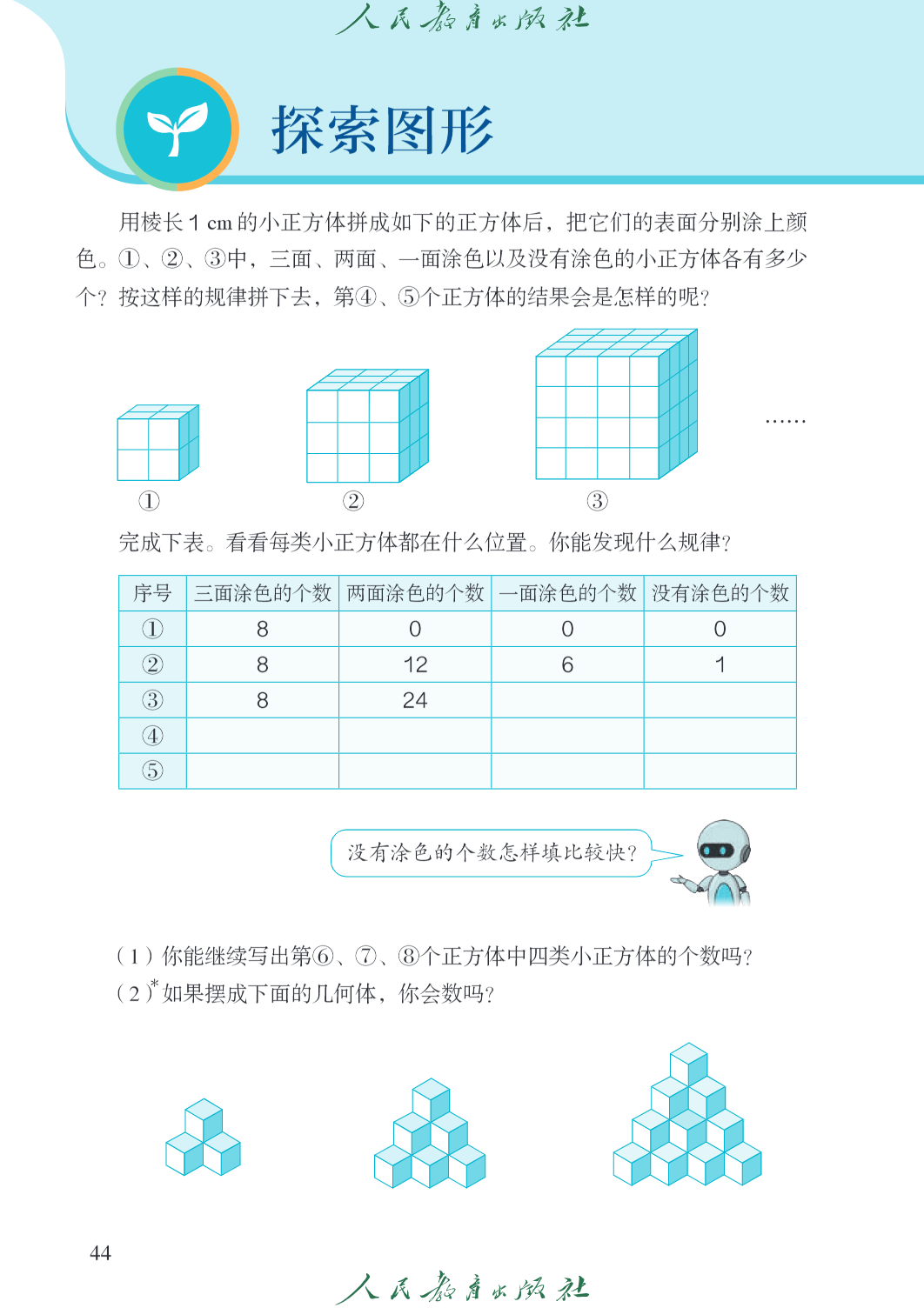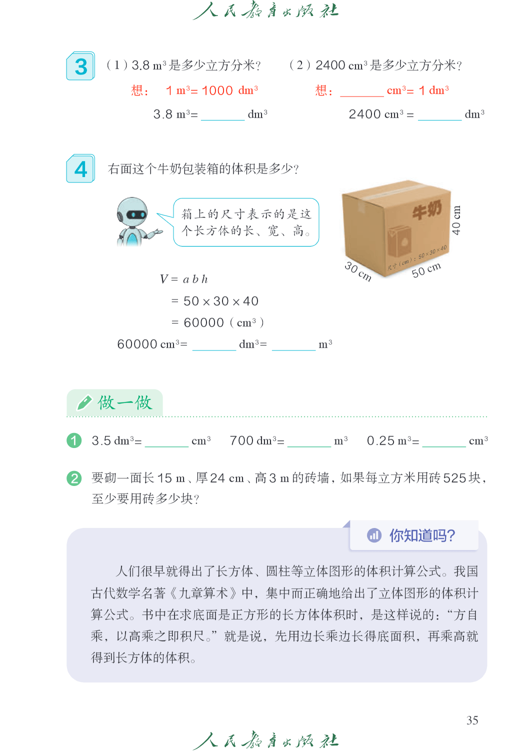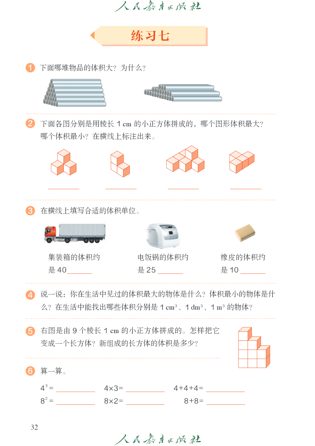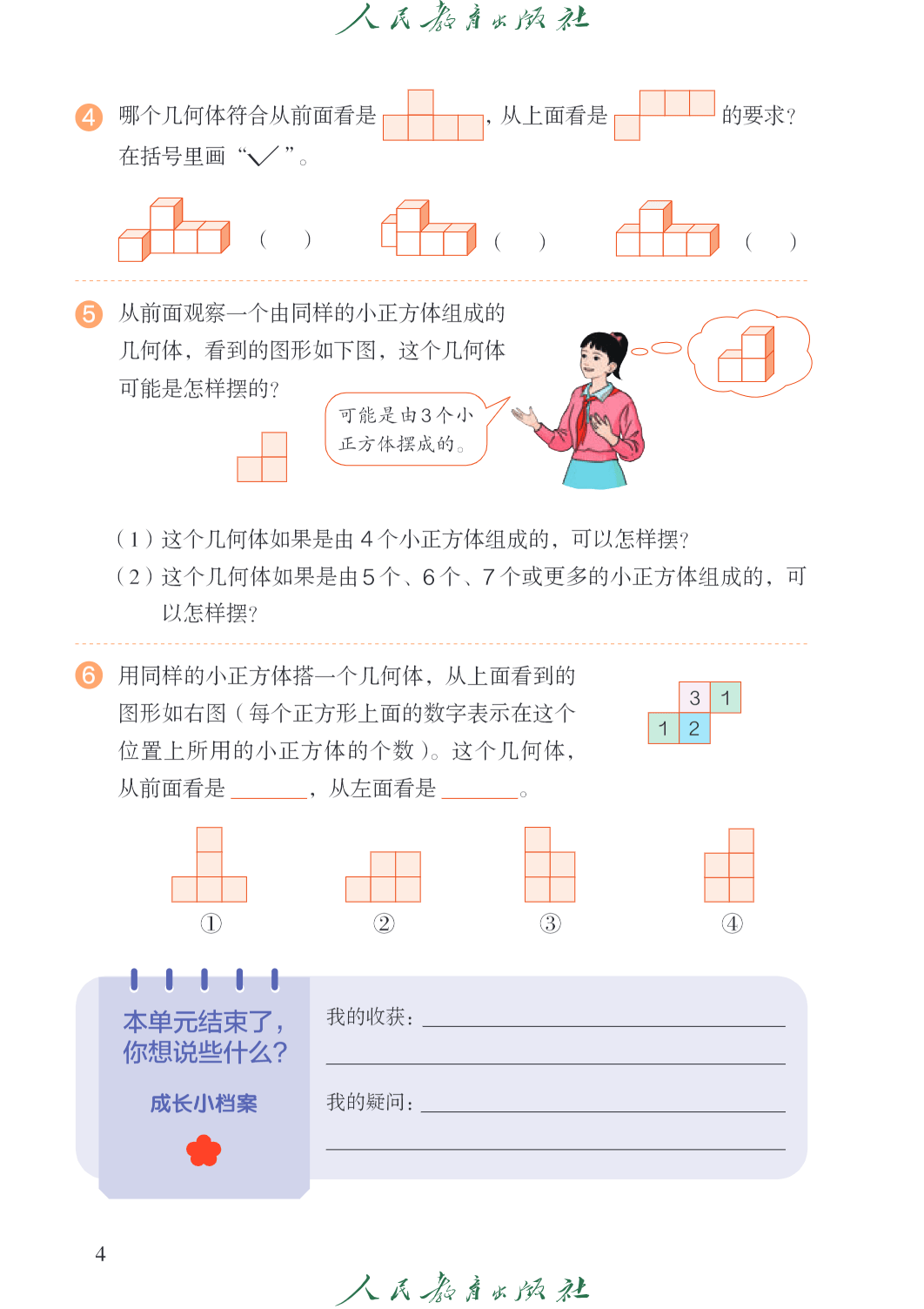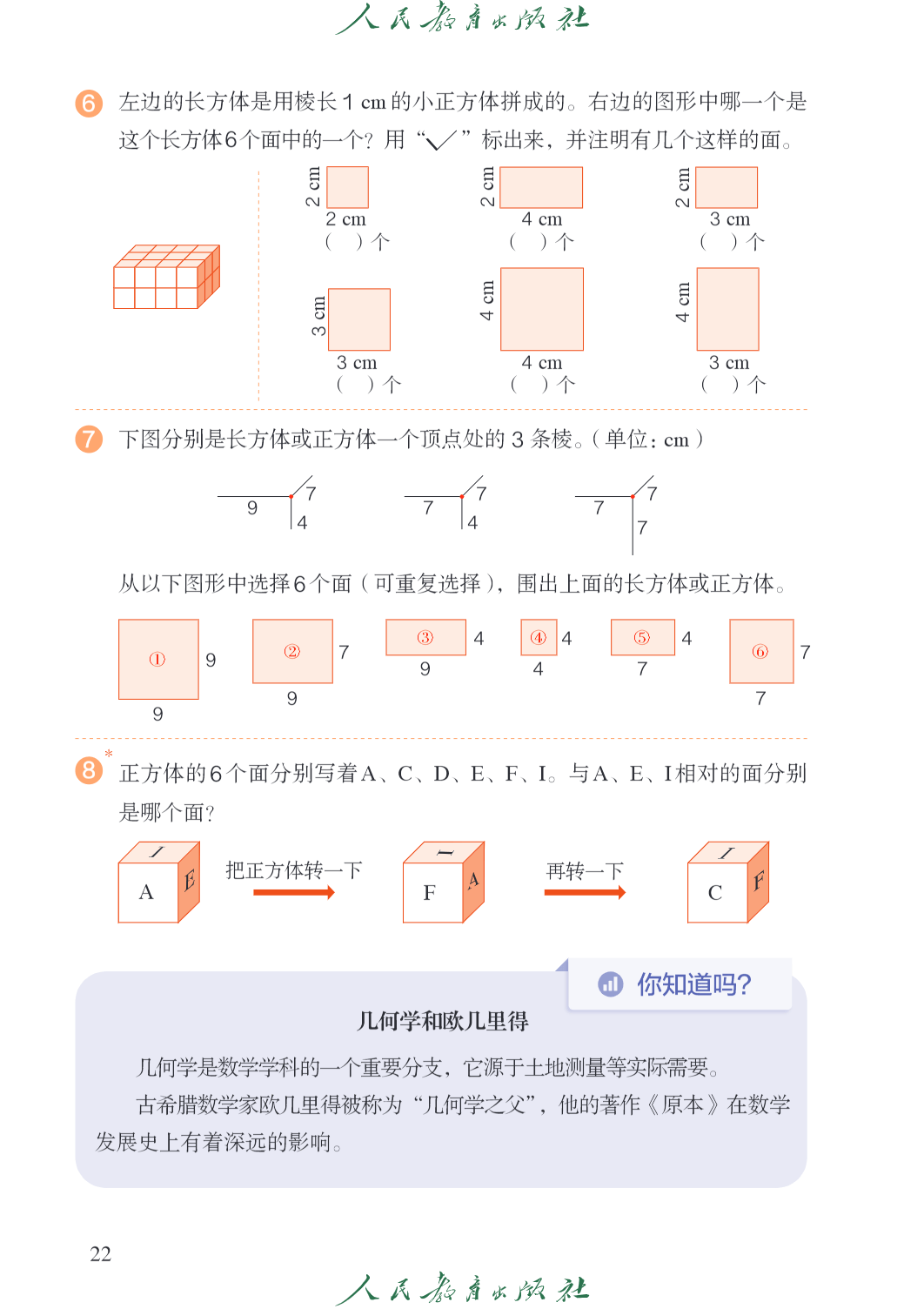 教材优化内容编排,新增观察物体单元,调整图形运动与统计板块,将关联知识集中呈现,契合学生认知规律。编写凸显实践性与探究性,通过生活情境导入(如立体图形实物观察)、动手操作实验(如长方体体积推导)、分层习题设计,强化知识与现实的联系。