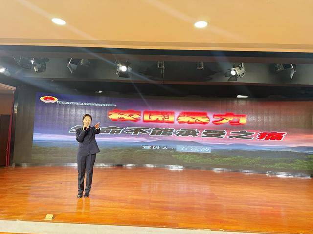 在法治教育讲座中,许辉副所长结合校规校纪与法律的关系,强化学生法律认知。乔凌波检察官则通过开展“阳光校园,拒绝暴力”主题宣讲,为学生普及法律知识,提高学生的自我保护意识和法律防范能力。王杨大队长围绕交通管理结合案例开展讲座,对学生进行交通安全教育。