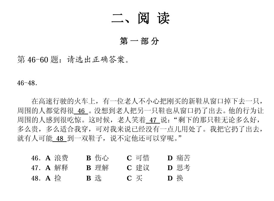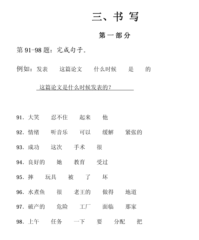 五级考试真题如下:有听力、阅读和写作三部分,共110分钟,