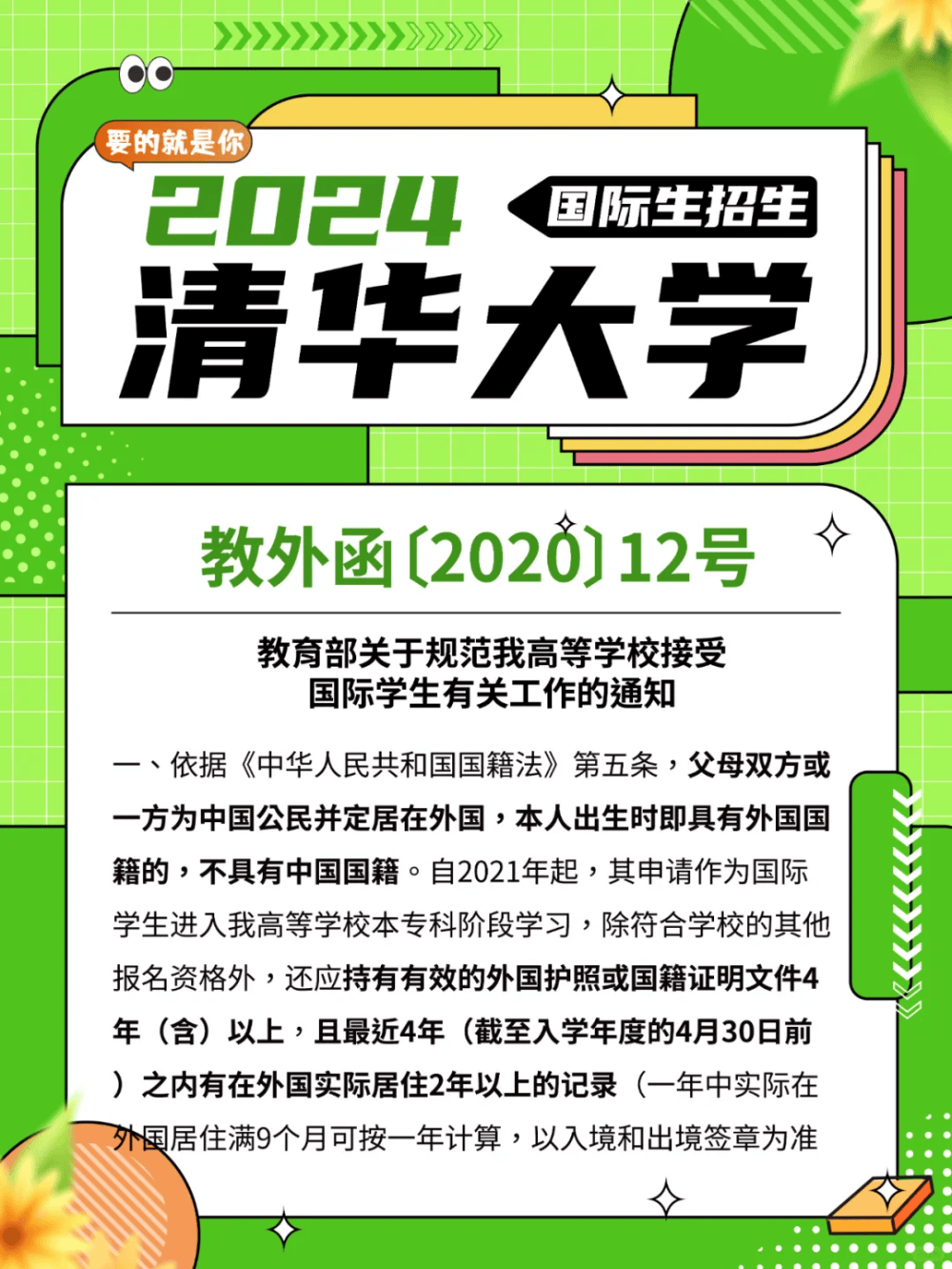 以申请国内最顶尖的学府清北来说,海外华裔孩子可以避开国内万马千军过独木桥的高考,在高中成绩、汉语考试成绩、SAT成绩达标的情况下就有很大概率被录取。
