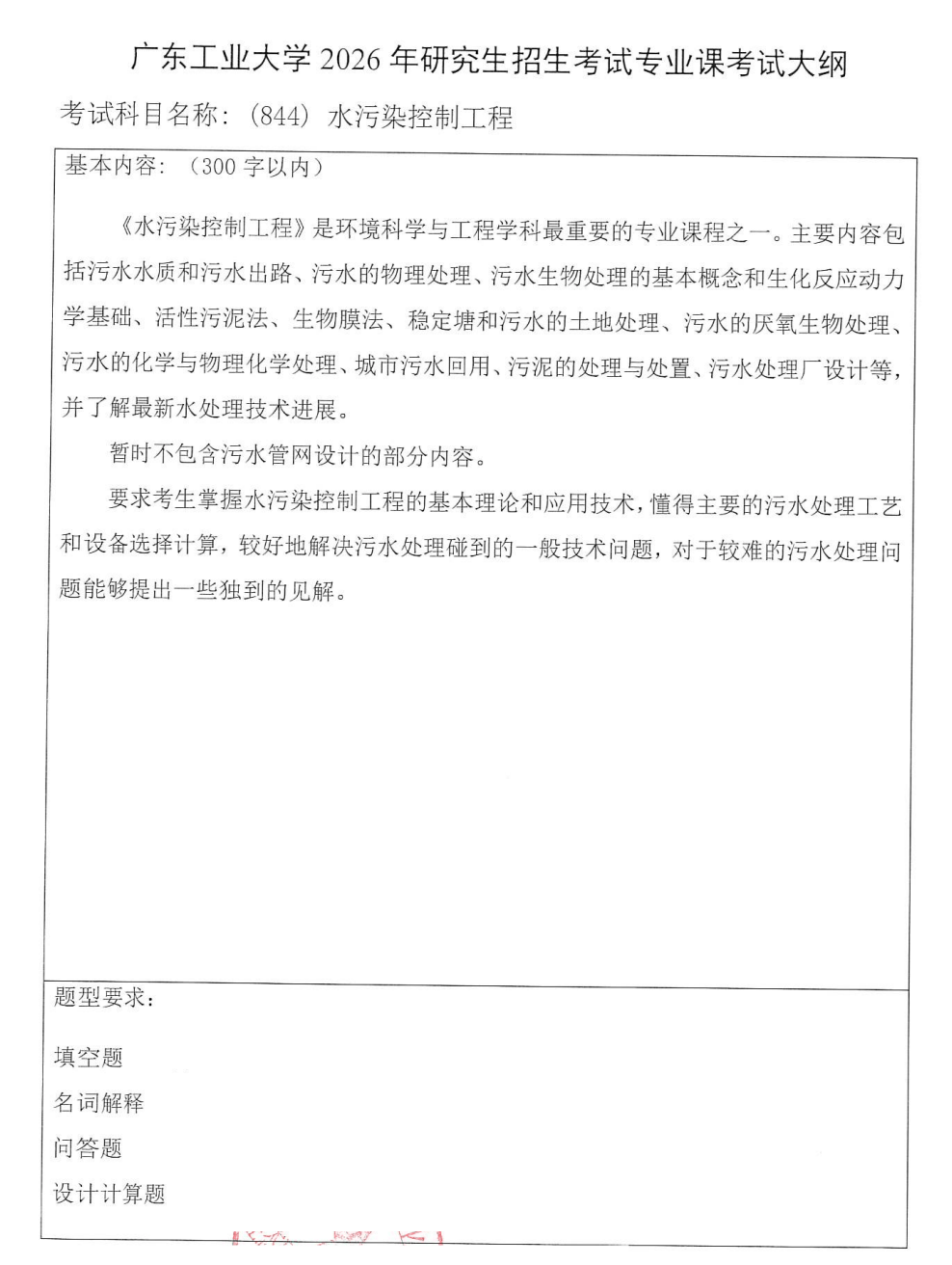 【(844)水污染控制工程】26专业课大纲与25专业课大纲对比:不变。提醒同学们大纲只是考试范围不是重点,务必配合近年真题考点去复习。