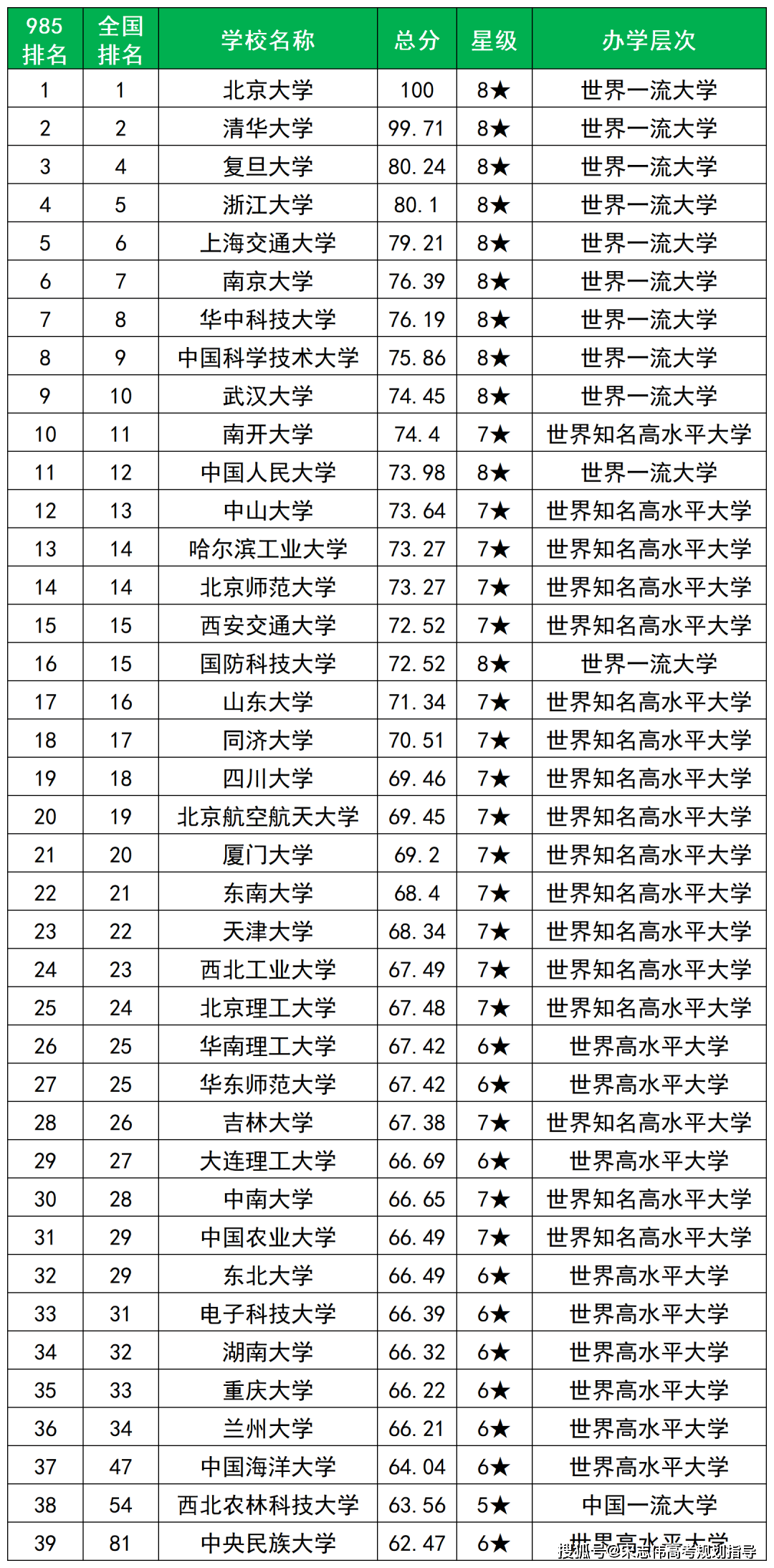 目前“985”高校有39所,其中34所是上述中的“34所”自划线高校,这就意味着“985工程”高校中有5所并非自主划线的高校,而是按照国家线来划定其复试分数线。这5所高校是:中国海洋大学、西北农林科技大学、中央民族大学、国防科学技术大学、华东师范大学。
