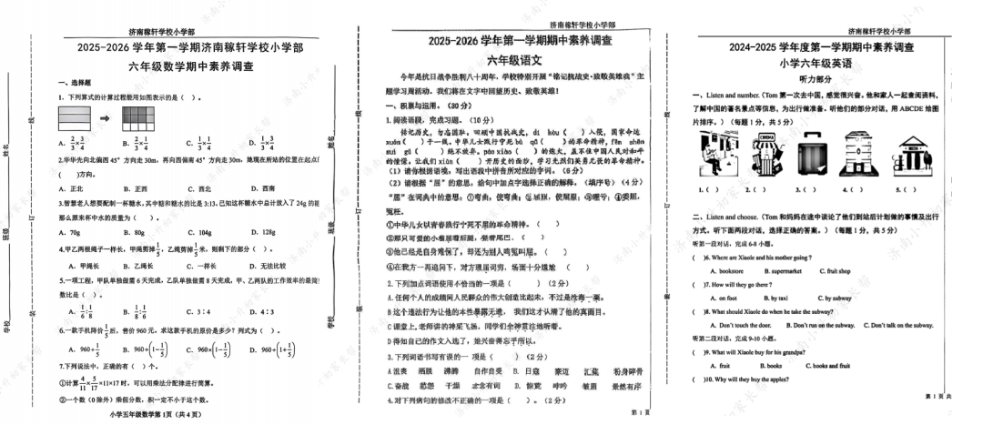 【期中真题】稼轩真题全了!槐荫区、历下区、历城区…六年级期中真题免费领!