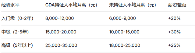 CDA持证人与未持证人薪资对比表(数据来源:权威招聘平台报告)
