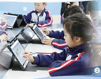 ②山东省淄博市张店区北苑小学学生在人工智能辅助下,自主开展整本书阅读。