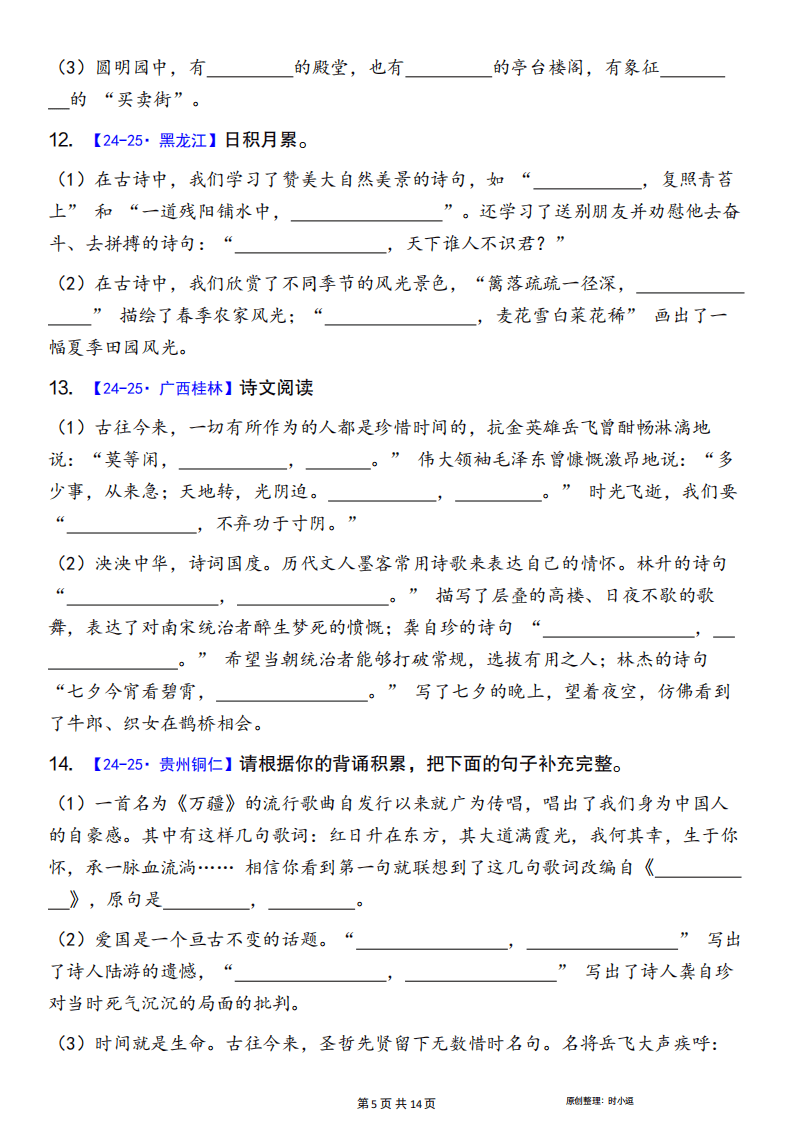 这份资料是 “五年级上册语文期中积累运用”“课文重点填空训练”“古诗名言语境运用” 的有力支撑,让五年级语文积累学习从 “零散记忆” 转向 “系统整合与能力内化”。