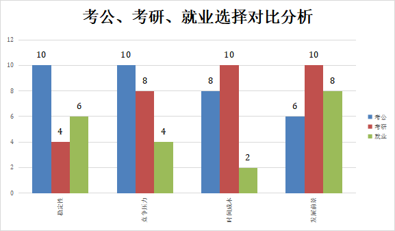 从稳定性、竞争压力、时间成本、发展前景等方面对比三大选择: