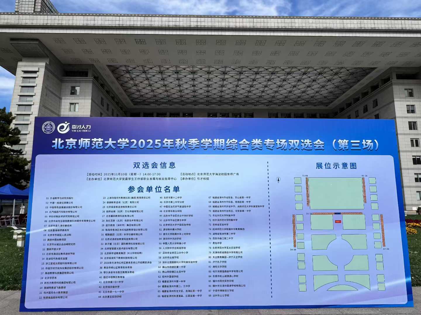 作为北师大的优势领域,教育类单位成为本次双选会的核心力量,汇聚了众多教育界标杆机构。清华附中嘉兴实验学校、人大附中亦庄新城学校、北京市第一0一中学等名校踊跃参会,现场开展面对面交流与初步面试,吸引大量师范生驻足咨询;