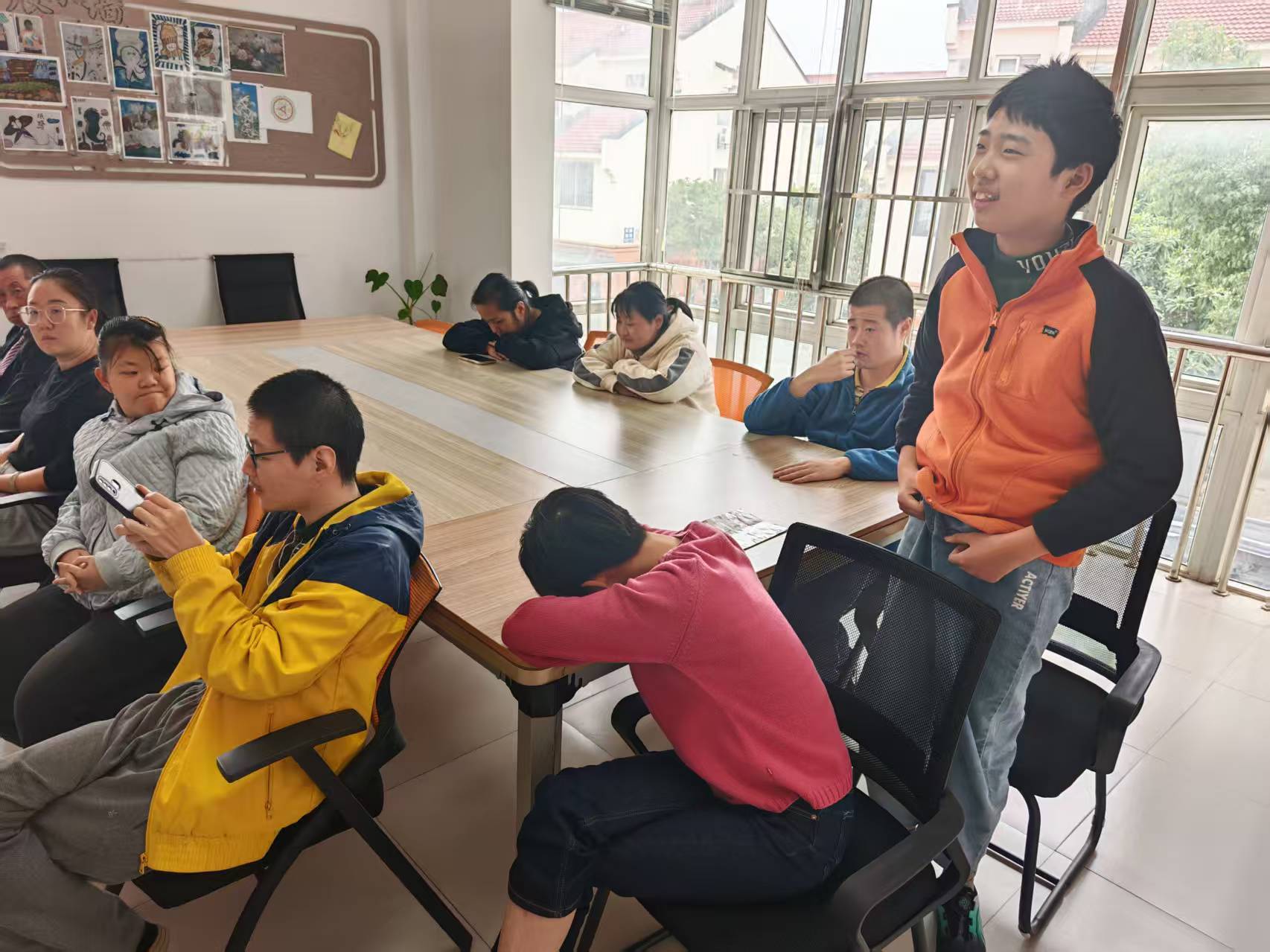 “我知道了,东山碧螺春就是我们苏州本地的,主要是绿茶。”话音未落,邹冲就抢先一步上台,通过“连一连”把碧螺春归属了绿茶类。受到鼓舞的小伙伴也摩拳擦掌,跃跃欲试,在冯老师的引导下,三下五除二为其他茶叶品牌完成了正确归类。冯老师颇感欣慰的说,大家都很棒哦,喝茶有益健康,以后要多喝茶和白开水,少喝奶茶和饮料,养成健康的生活方式和习惯。谢谢冯老师!残友们兴奋地一蹦三尺高,活动室内茶香阵阵、沁人心脾。