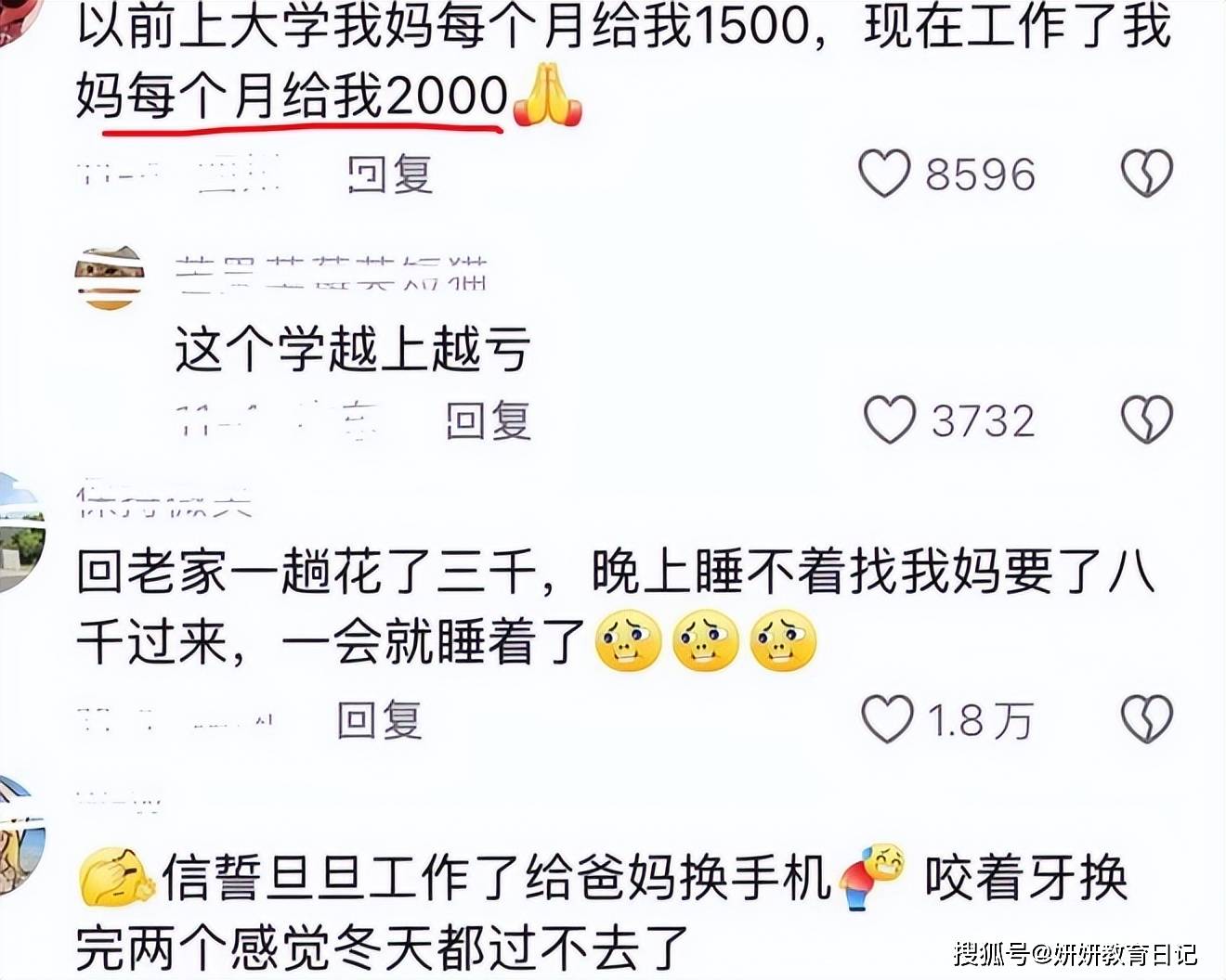 一位家长哭诉,说他们家供得起孩子上大学,但是现在却要供不起孩子上班了。孩子上班并不是他们独立的开始,而是另一个花销的开始。