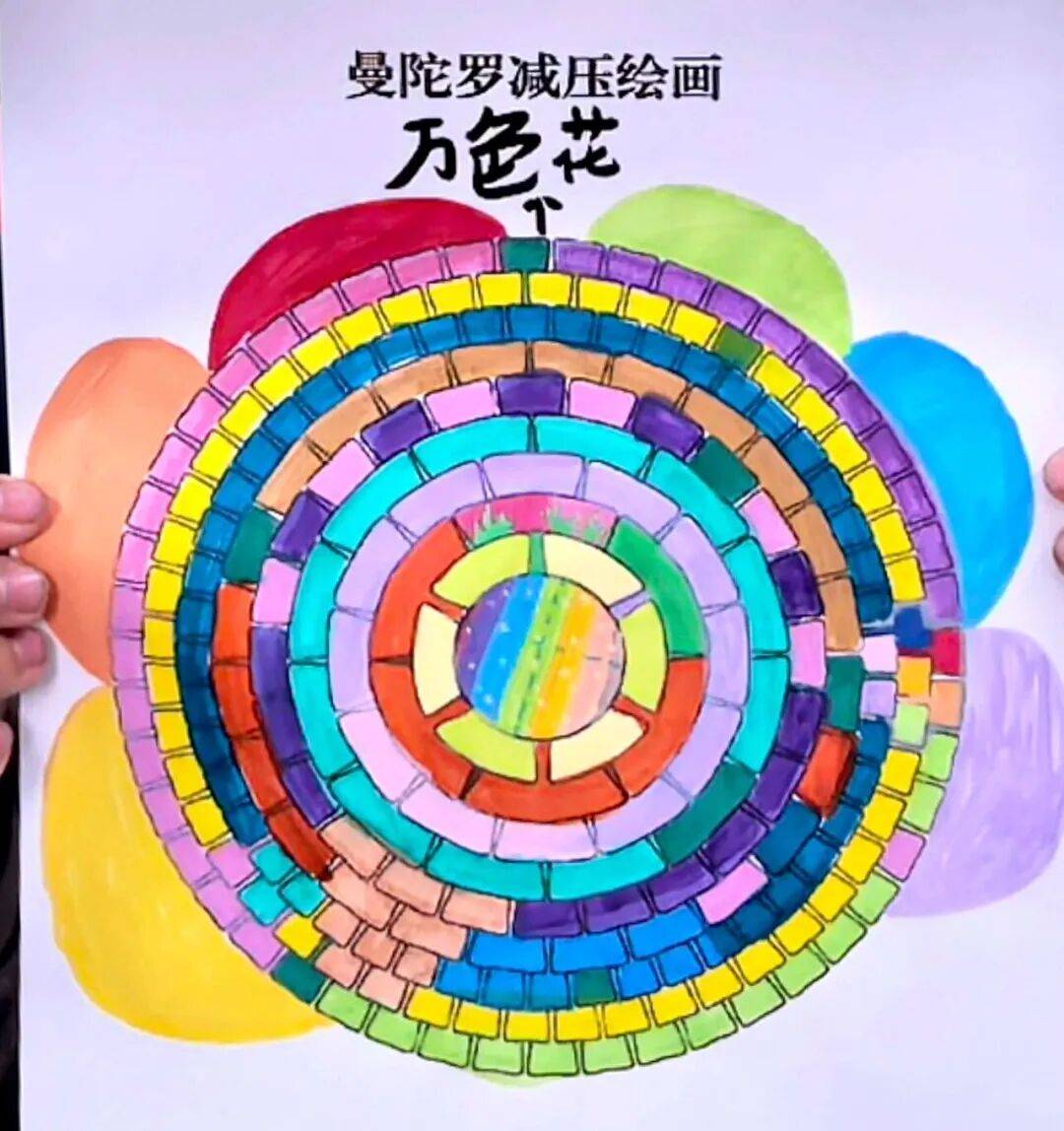 小宇的心理状态显著改善后,已能正常上学。在后来心理社团活动中,他还创作了一幅曼陀罗,画面色彩柔和丰富,运用了绿色、黄色等,通过和谐的色彩搭配,展现了内心的力量与坚韧。