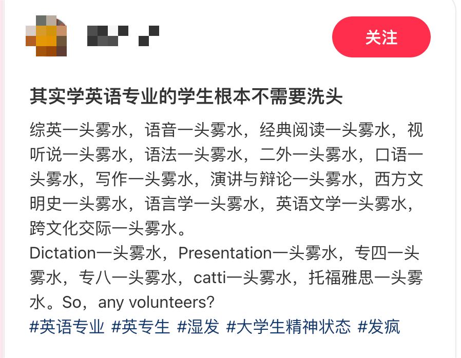 英语专业也申请出战,英语专业的不用洗头,是综英一头雾水,语音一头雾水,经典阅读一头雾水......
