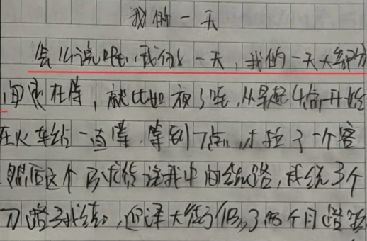 第一篇是一位博主在工地上邀请工人写的《我的一天》。