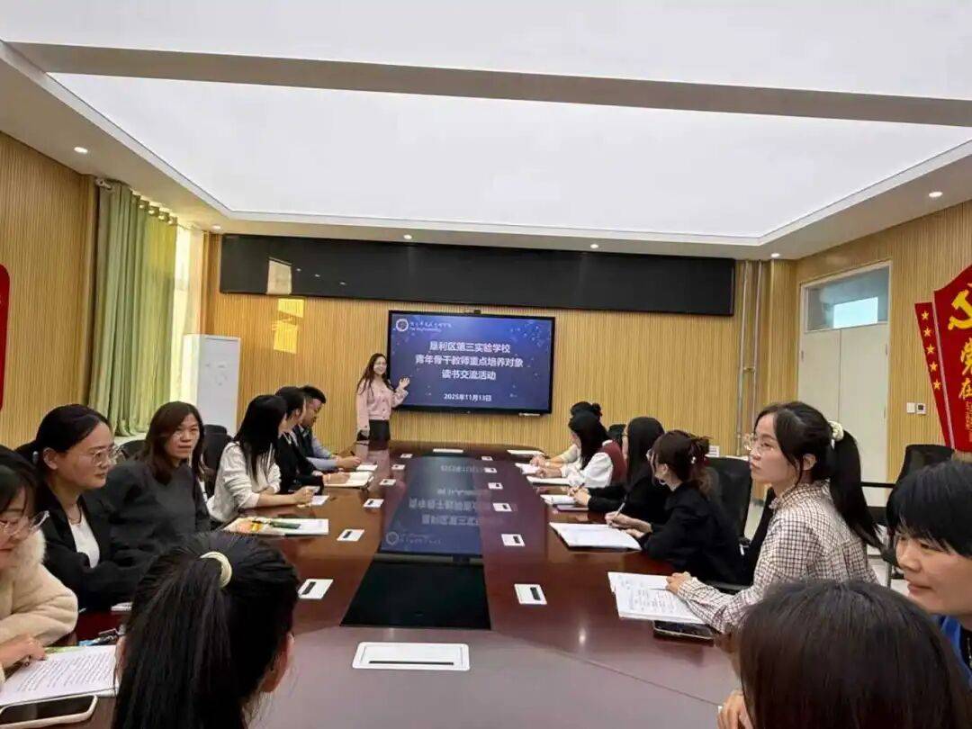 为推动青年教师专业成长,11月13日下午,垦利区第三实验学校在尚学楼二楼党员活动室举办以“阅读·思辨·成长——做新时代的智慧教育者”为主题的青年骨干教师读书交流活动。学校教科室成员及17名青年骨干教师重点培养对象共同参与。