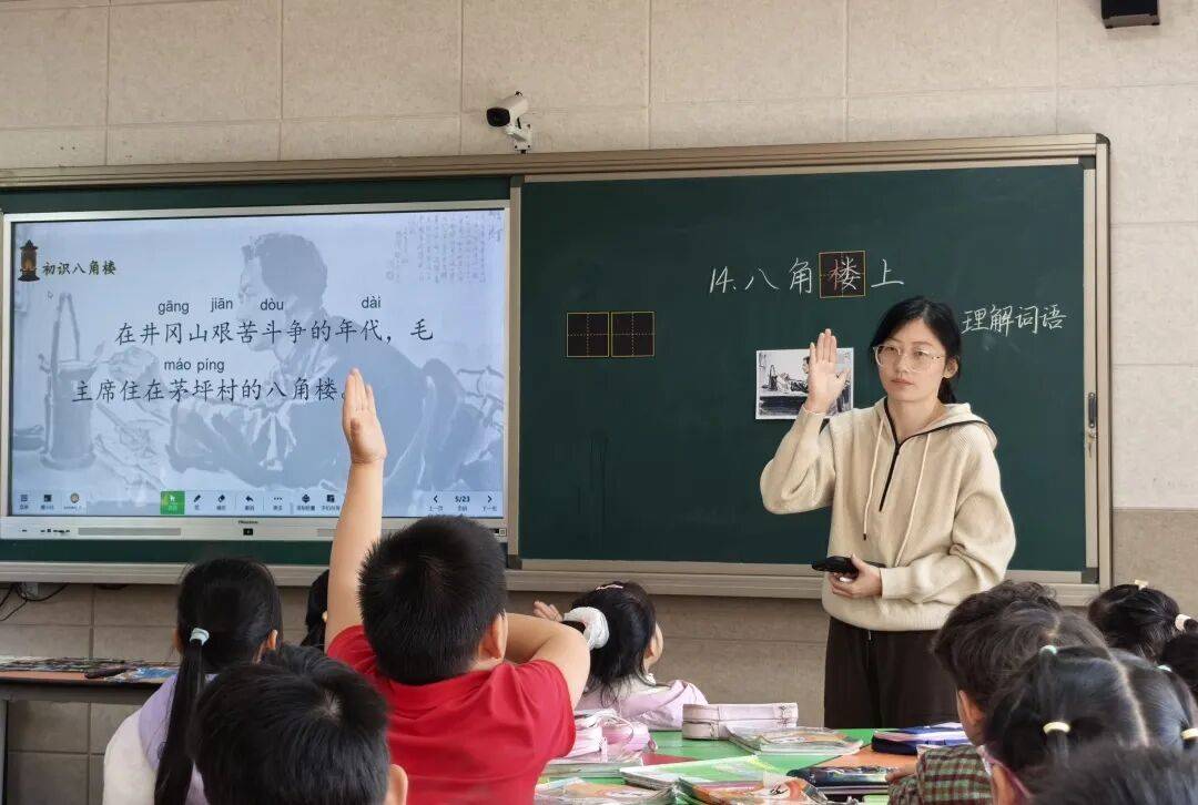 杨林镇中心小学张智瑜老师展示二上《八角楼上》,她以 “生为本、解难点、巧建构” 为核心,打造出扎实灵动的语文课堂。教学中,教师紧扣低年级学生认知特点,将“艰苦” “夜幕降临” 等重难点词语拆解,引导学生在自主探究与合作交流中精准理解词义。课堂环节环环相扣,从 “初识人物” 到 “品读场景”,再到 “感悟精神”,层层递进推进教学目标;板书设计极具巧思,清晰呈现文本脉络,又为学生搭建理解框架。整堂课以学生为主体,在扎实的语言训练中落实语文要素,让红色精神在潜移默化中浸润心灵。
