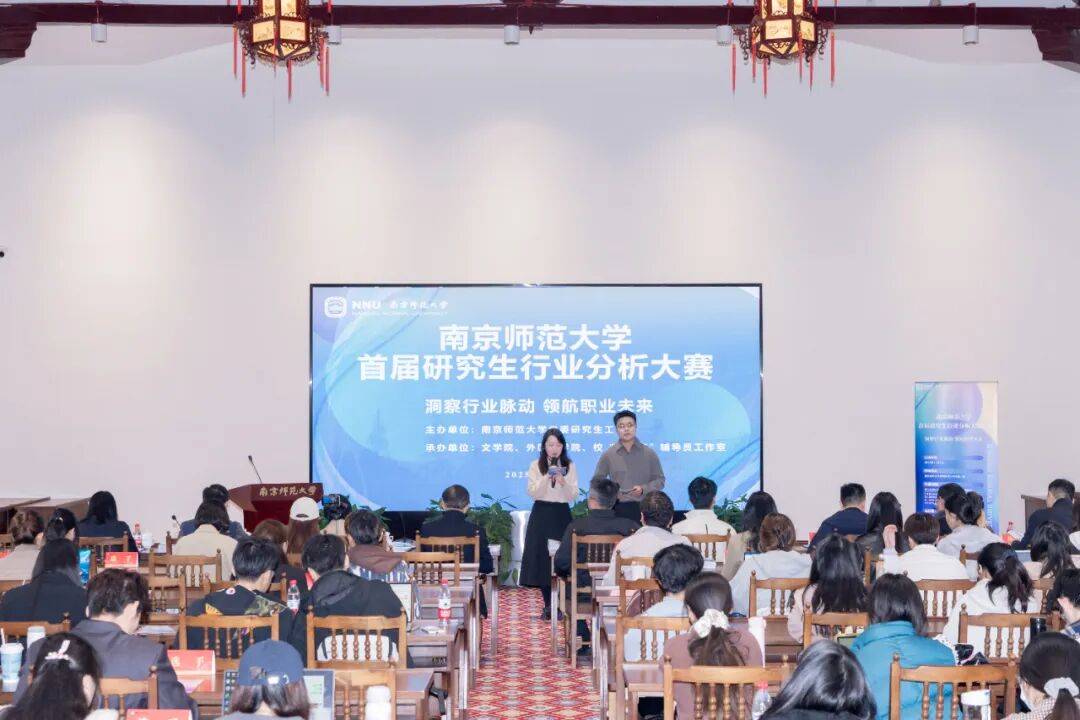 为响应党中央与国务院的战略号召,秉承“为党育人、为国育才”的崇高使命,引导研究生科学规划学业与职业发展,11月6日下午,南京师范大学首届研究生行业分析大赛决赛在随园校区100号楼二楼报告厅举办。南京师范大学党委研究生工作部部长沈菲、上海外国语大学传媒学院教授陈正辉、南京市农业农村局乡村产业处副处长汪婧、南京师范大学金陵女子学院副院长杨光飞,南京师范大学商学院技术经济与管理系主任李健、京东方科技集团股份有限公司全球校招部华东大区经理徐伟堂、江苏鱼跃医疗设备股份有限公司集团招聘总监吴楚杰、上能电气股份有限公司校招经理王科,南京师范大学党委研究生工作部副部长沈晓颖以及各学院学生代表参加了本次活动。