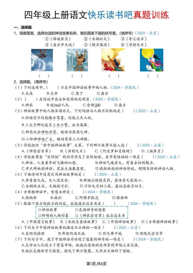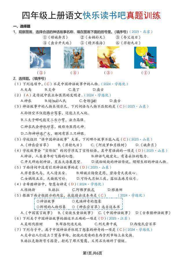 期中临近,四上语文快乐读书吧考点还没吃透?孩子记了很多词句却抓不准答题重点,刷题没方向?这份《四上语文快乐读书吧真题训练(含答案12页)》浓缩高频考点,帮孩子考前精准突击,快速掌握答题技巧,快乐读书吧分数稳稳拿!