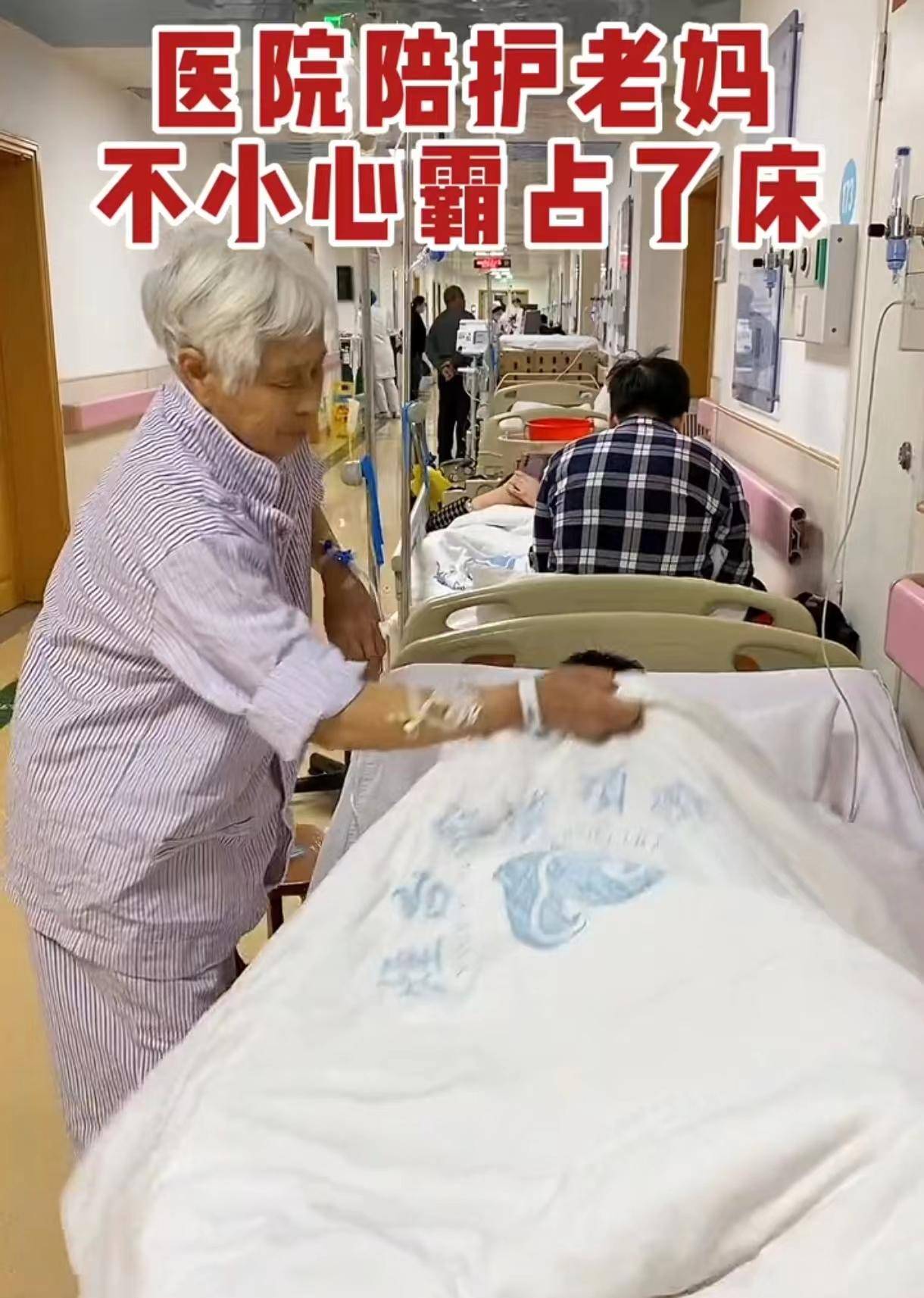 网友说:一开始没觉得有什么,后来看到老人轻轻拍了他一下,再仔细帮他掖好被角,我顿时破防了。这就是母爱啊!无论什么时候都会想着孩子。