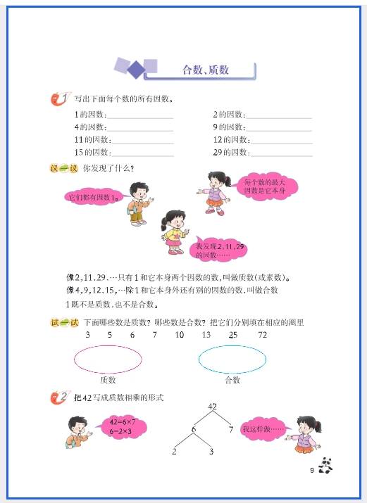 • 核心内容:因数和倍数的概念(如 6 是 1、2、3、6 的倍数);2、3、5 的倍数特征(个位是 0/2/4/6/8 是 2 的倍数,各位数字和是 3 的倍数则是 3 的倍数);质数(只有 1 和自身两个因数,如 2、3、5)、合数(除了 1 和自身还有其他因数,如 4、6、8);最大公因数(GCD)和最小公倍数(LCM)。