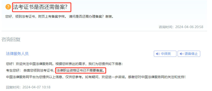 您好,领到法考证书,附页上有备案字样。请问是否还需办理备案?谢谢。