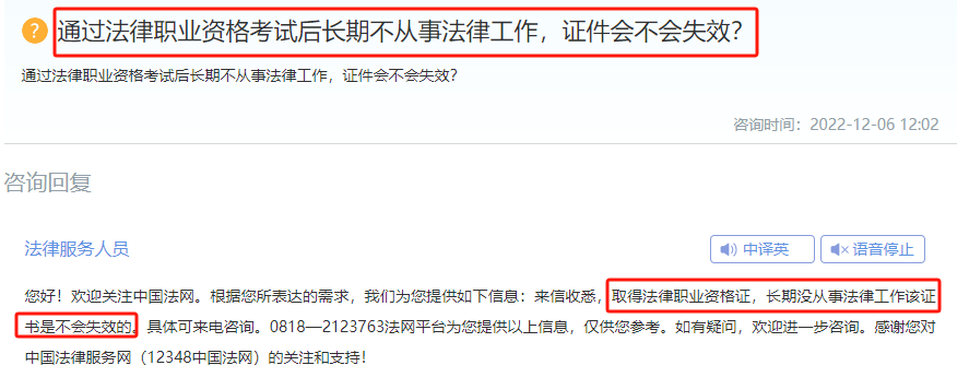 通过法律职业资格考试后长期不从事法律工作,证件会不会失效?