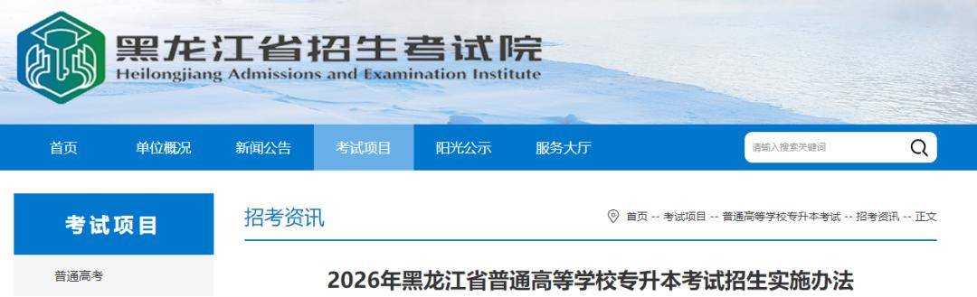 黑龙江专升本报名时间:2025年11月25日至12月8日;补报名时间:2026年1月9日至12日。