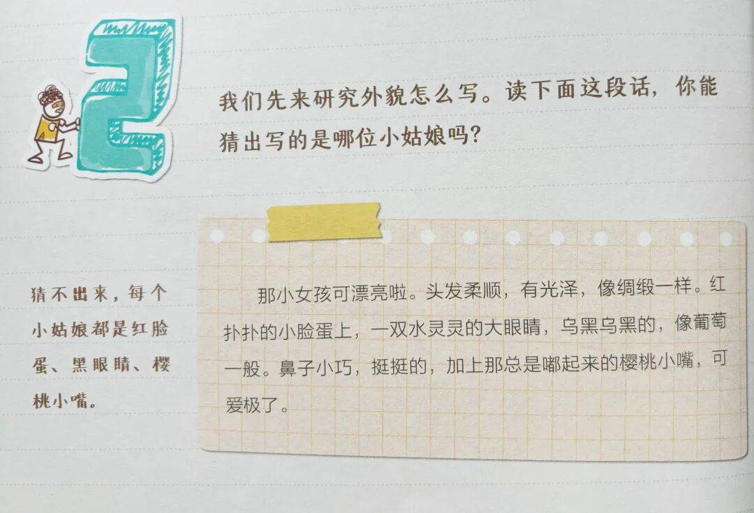 这第二、第三步就是在破题,“描写外貌”这个要求其实是很笼统的,为什么有人写外貌高分,有人就不行。其实是需要帮助孩子去理解,什么样的外貌描写才是“有效”的?