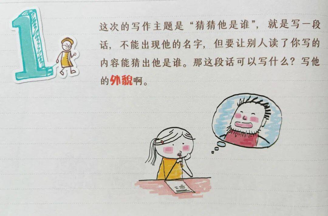 拿小学三年级作文《猜猜他是谁》为例,蒋老师就分了六步走,给大家一个参考(也写在了他编写的《超级作文本》里面)