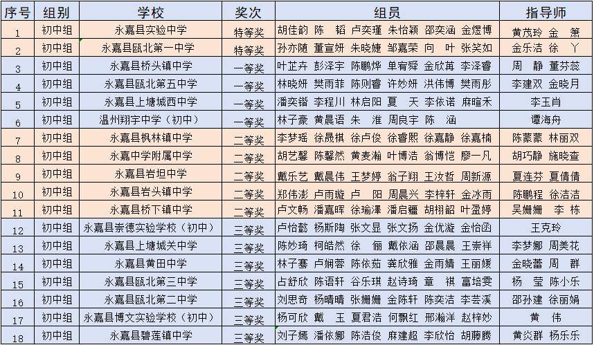 初中组获奖名单