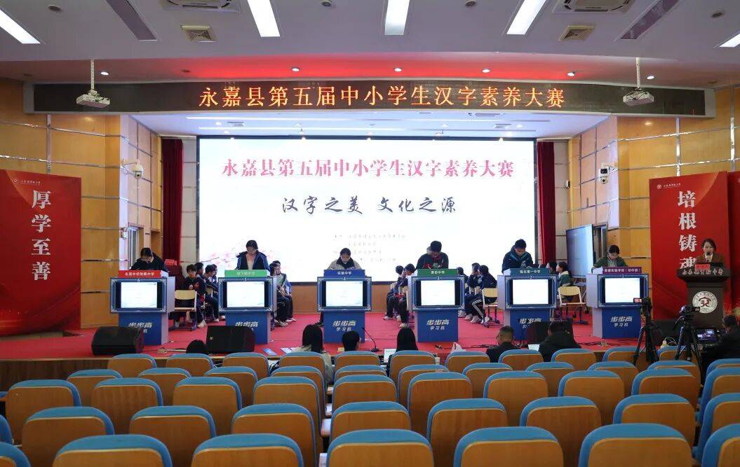 11月20-21日,由永嘉县语委、县教育局主办的第五届中小学生汉字素养大赛在实验中学举行,全县42支中小学代表队经过两天的紧张角逐,最终瓯北中心小学、县实验中学分别获得小学组和初中组第一名,并将代表永嘉县参加全市比赛。县教育局党委委员、副局长徐胜飞为获奖选手颁奖。