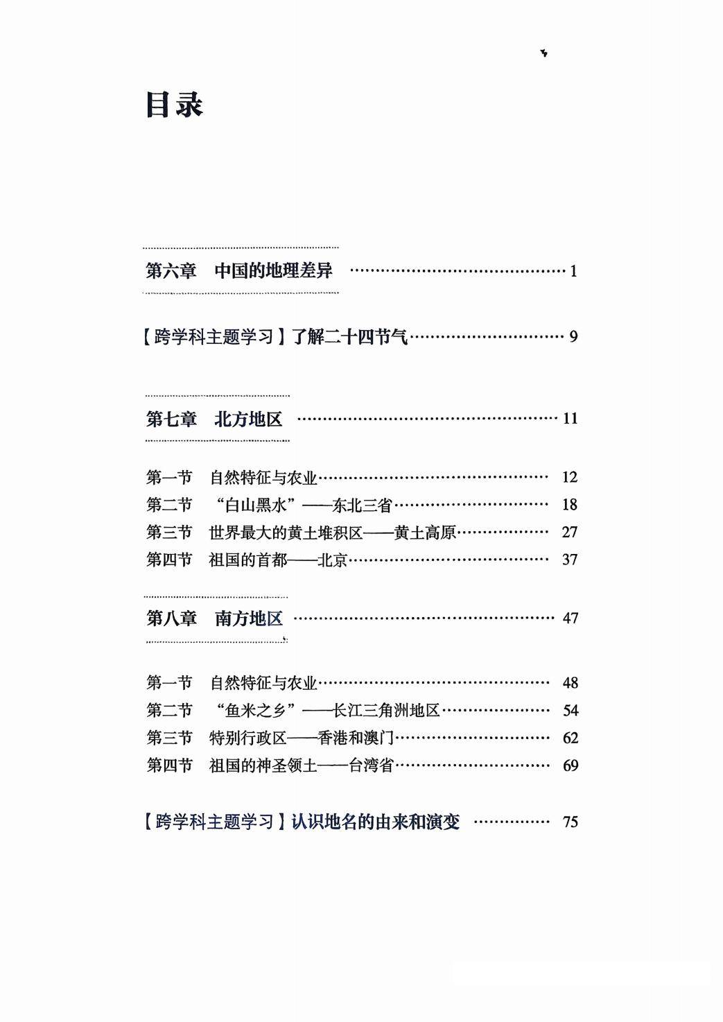 在 “中国的地理差异” 章节,学生将学习我国自然环境(气温、降水、地势)和人类活动(农业、人口、城市、经济、文化)的显著差异,理解秦岭 - 淮河一线作为重要地理分界线的意义,以及我国四大地理区域的划分依据。北方地区部分,探究其地形、气候等自然特征与农业的关系,了解东北三省的地理特点、黄土高原的生态问题及治理、北京的城市职能与发展。南方地区章节,分析其自然特征与农业,学习长江三角洲地区的经济发展、香港和澳门的特别行政区制度,以及台湾省的地理概况和主权归属。西北地区部分,研究其干旱的自然特征、农业类型,以及塔里木盆地的资源与环境。青藏地区章节,探索其 “高”“寒” 的自然特征、农业特色,还有三江源地区的生态保护。