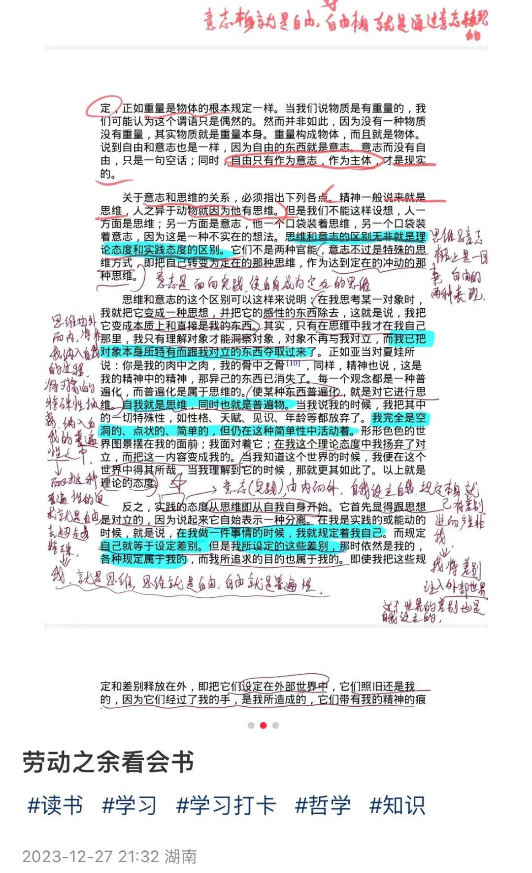 至于哲学文献嘛,已经不发了。但偶尔劳动之余,还是会看会书,附上自己密密麻麻的批注。