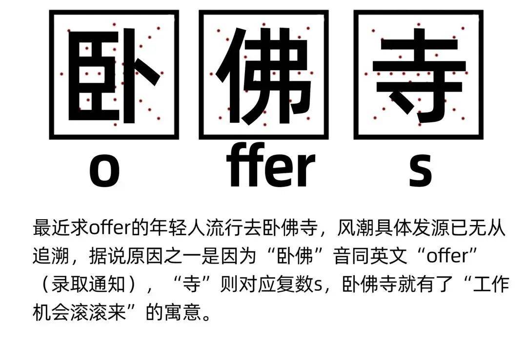 有的则寄希望于“卧佛寺”,去那里求香拜佛,只因“卧佛”的谐音是英文的“offer”。