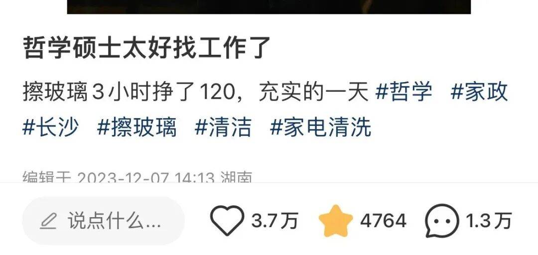 让他真正出圈的,是他发的这样一则帖子《哲学硕士太好找工作了》: