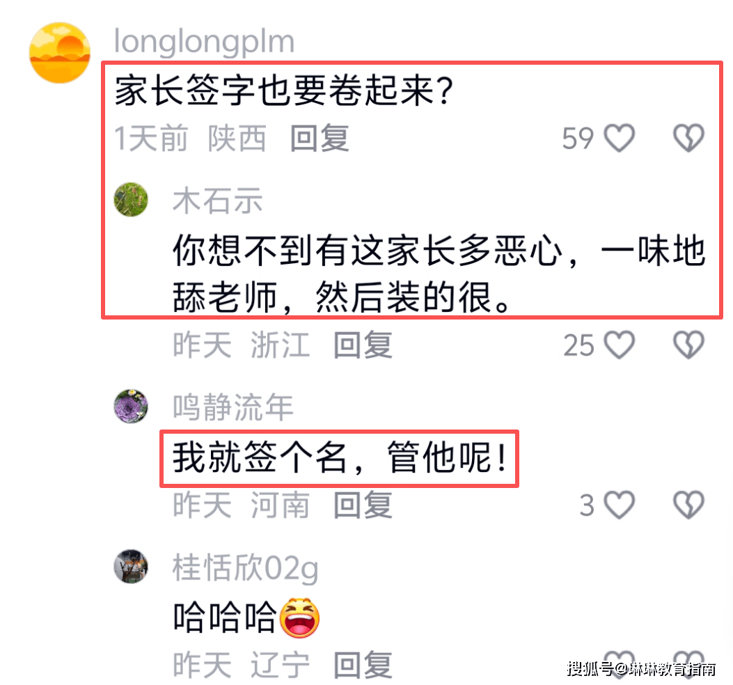 因此面对家长签名这种要求,总是格外重视,恨不得从方方面面表现一下自己,在外人看来或许是“自我感动”,殊不知在老师的眼里,早就把家长签字分成三六九等了。