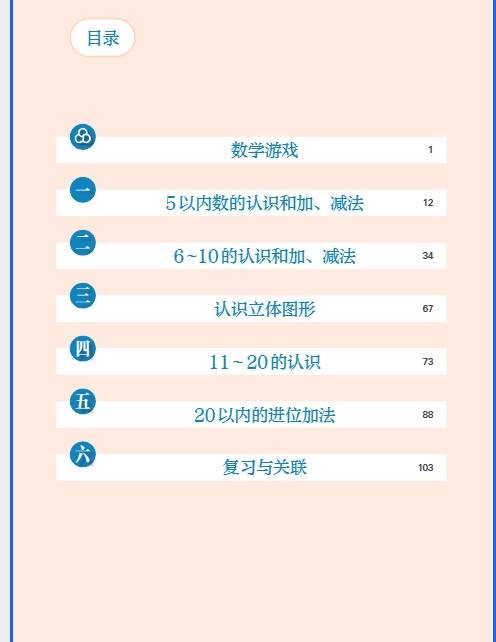 2025年学生将迎来新版教材,新教材将更加重视思维和阅读!为了方便广大学生在暑假预习新学期的课本知识,我们整理了2025新人教版一年级数学(上册)一电子课本,以图片的形式呈现给大家,希望对同学们的暑期学习有所帮助。