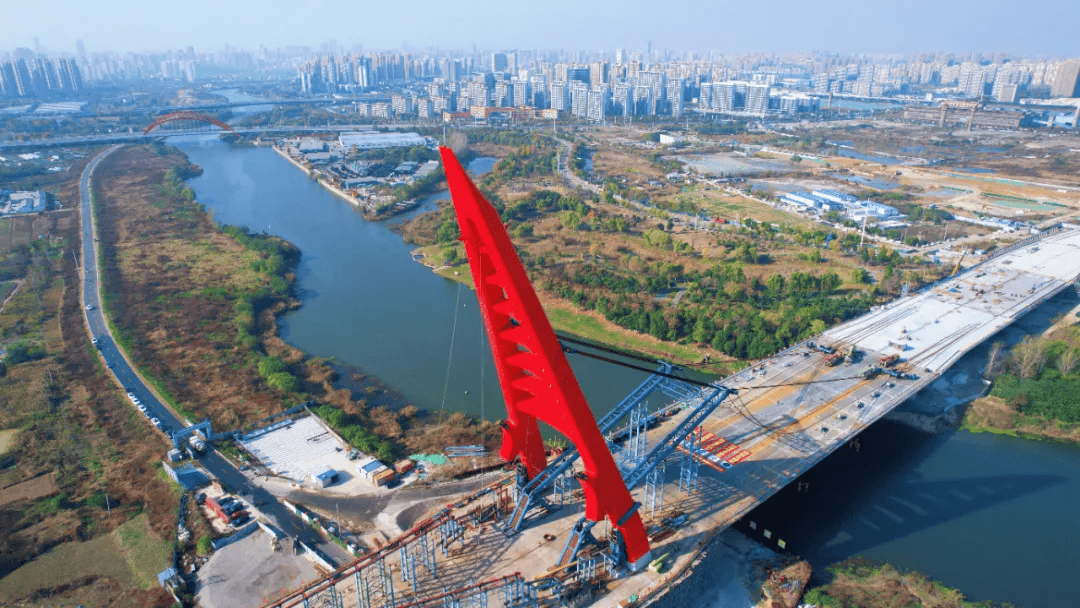 跨度之最:国内跨度最大的A型钢主塔竖向转体工程,跨度达170m;