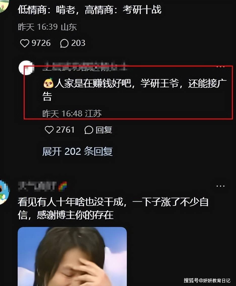 但渐渐的家长们突然醒悟过来了,如果考研连续失败,那跟啃老有啥区别。
