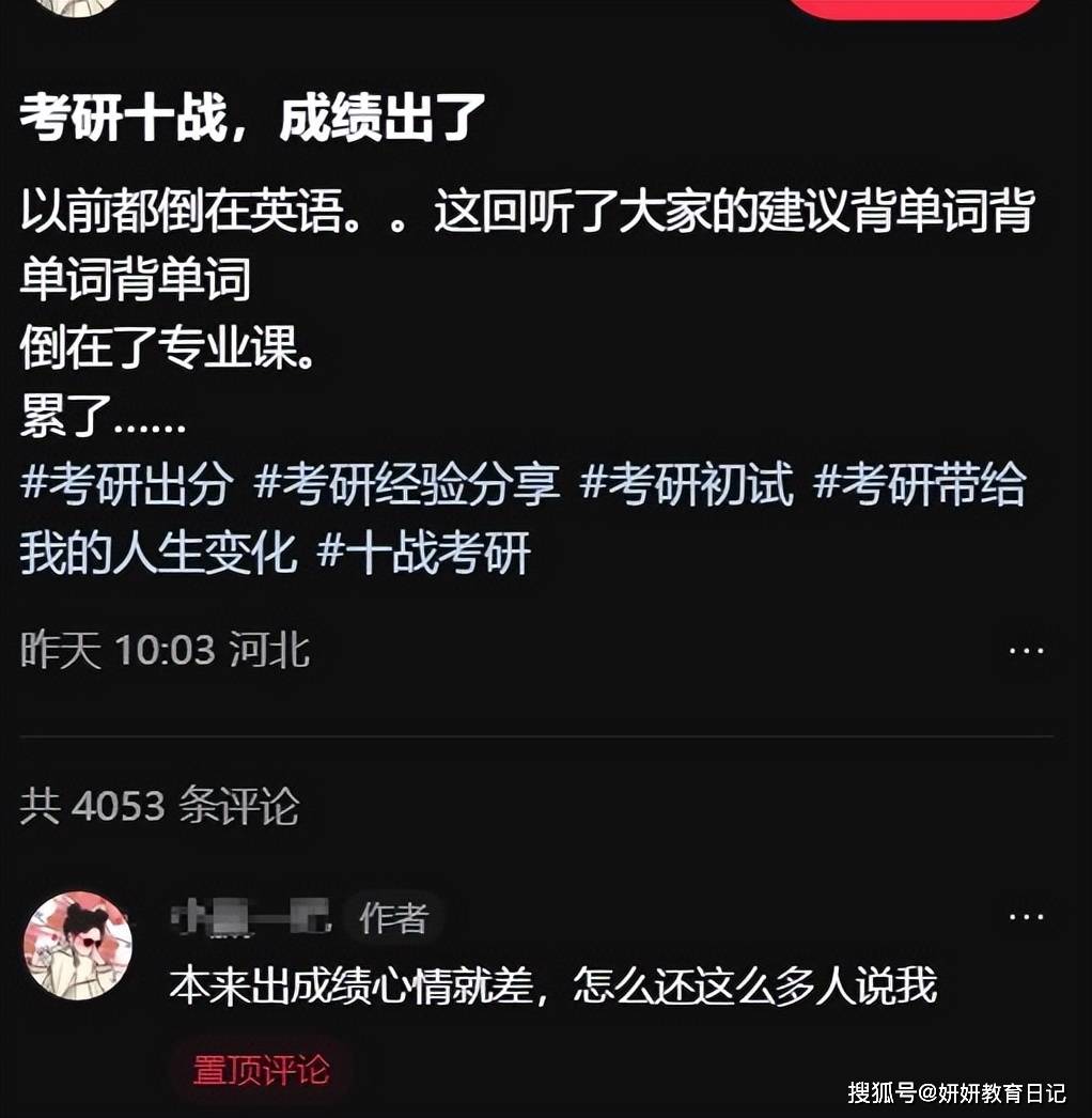 每一次都倒在英语上,这次终于听了大家的建议背单词了,结果专业课却又倒了。女生还不理解为啥她心情差得不到安慰,全是指责的言论。