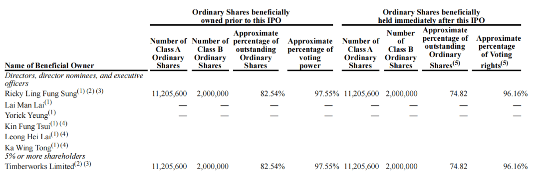 其次是股权结构的高度集中。创始人 Ricky Ling 在上市前持有 82.54% 的股份,即使完成 IPO,其持股仍高达 74.82%,掌控 96.16% 的投票权。对于投资者而言,这意味着决策高度依赖创始人意志,治理透明度与制衡机制较弱。这种结构在小型家族式公司的 IPO 中常见,但也带来了与企业长期治理相关的风险。