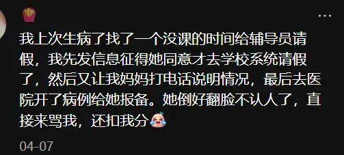 以前在大学,请假就和辅导员打个招呼就行。就算是严格的高三时期,请假也只需要告知班主任即可。现在的大学生请假需要“层层过审”,甚至还会被扣分。
