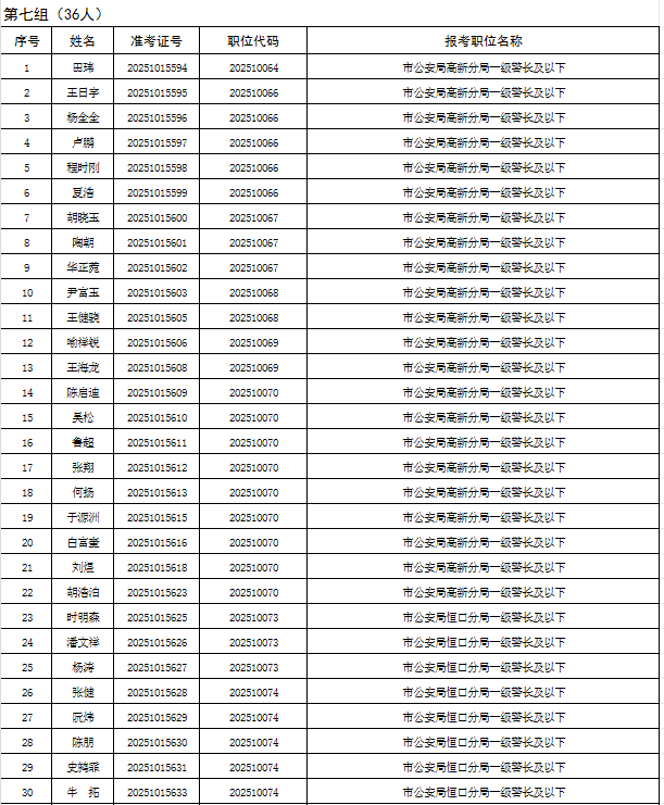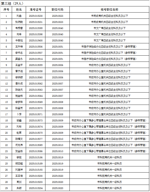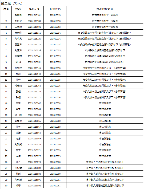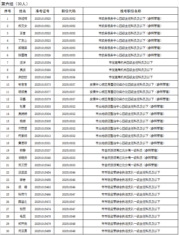 2.安康市2025年市级机关公开遴选公务员面试人员分组表