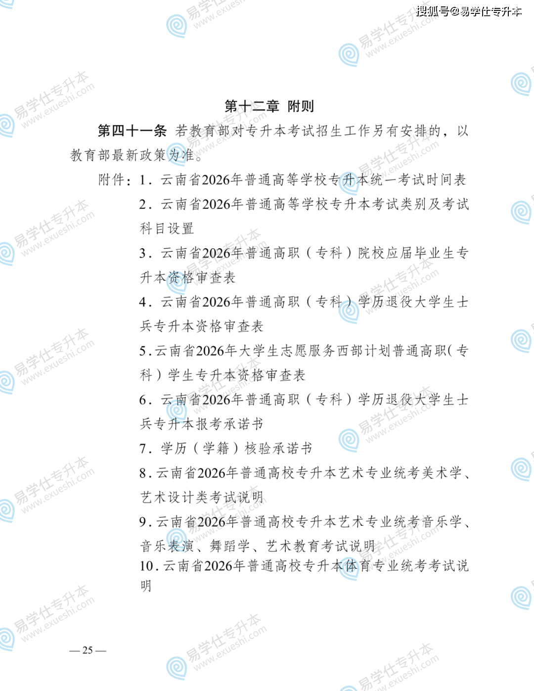以上就是云南省2026年普通高等学校专升本统一考试招生工作办法。