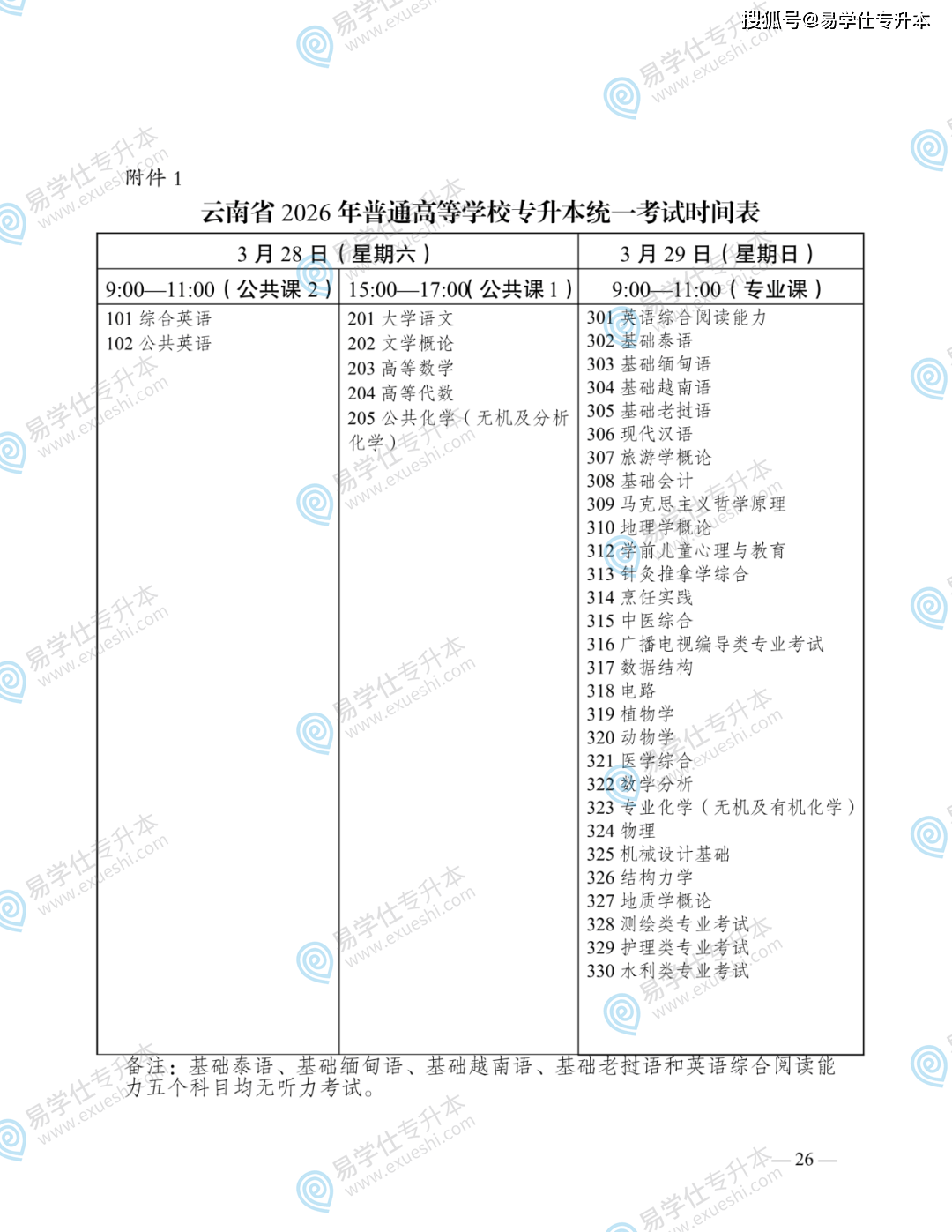 2026年云南专升本考试时间:2026年3月28日至29日,对比2025年云南专升本考试时间,整体只提前了一天。