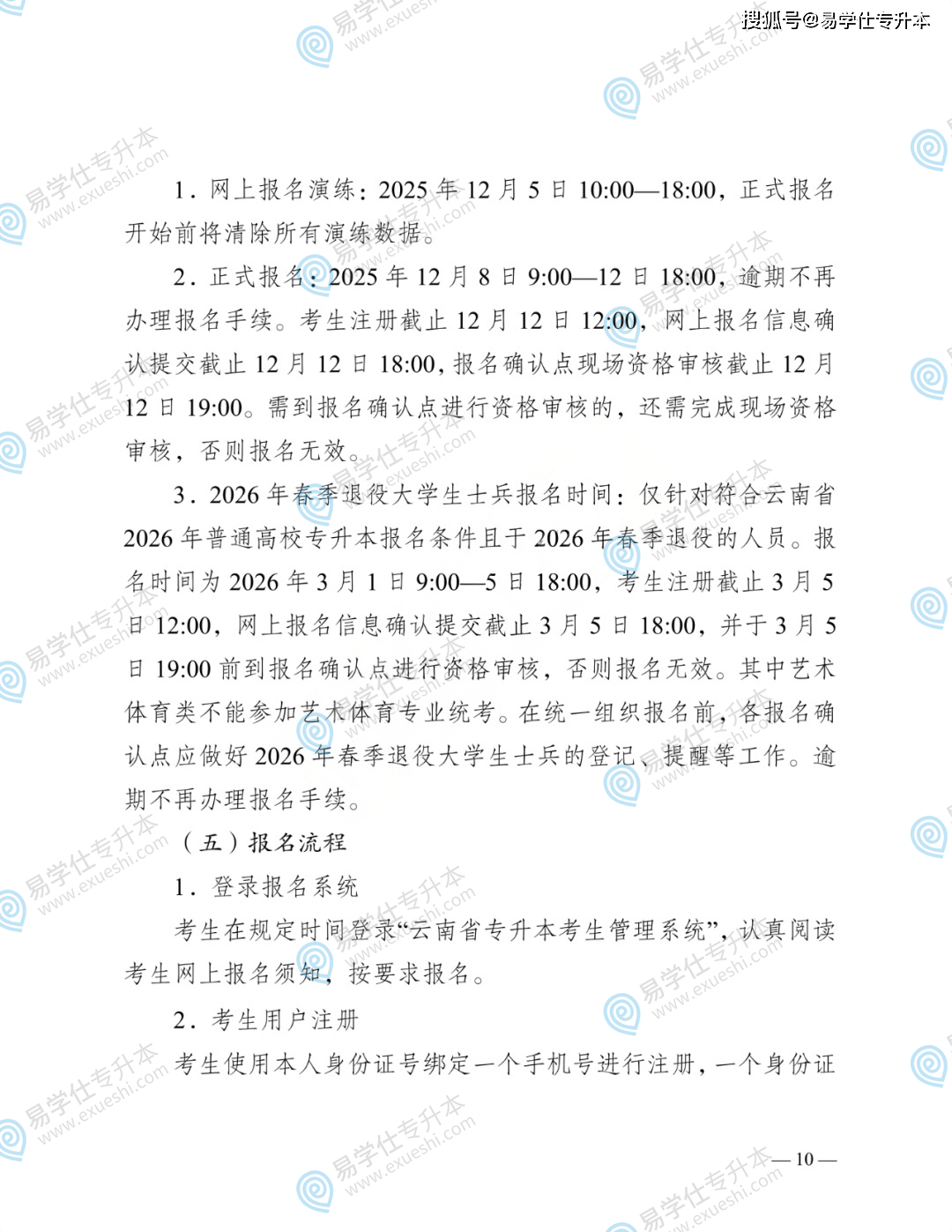 2026年云南专升本报名时间:2025年12月8日至12日,注意在报名之前云南专升本有一个模拟报名环节,模拟报名时间为:2025年12月5日。