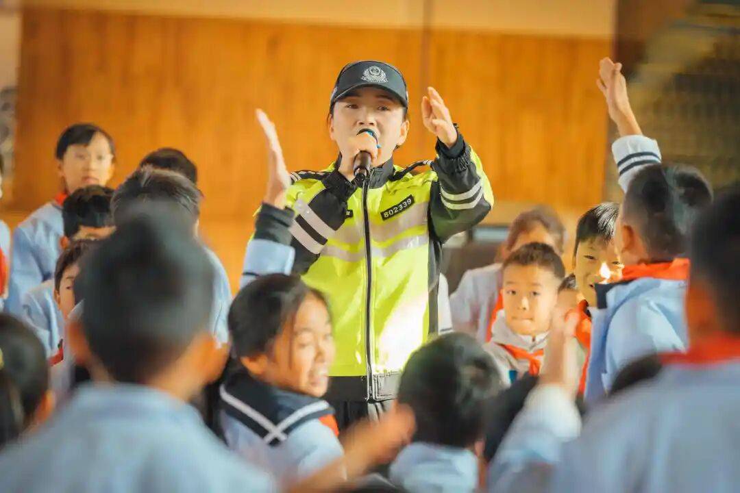 活动以交通指挥手势操学习拉开帷幕,在老师的示范下,同学们认真模仿“停止”“直行”“转弯”等标准动作,在肢体互动中解锁基础交通指挥语言,点燃学习热情。随后,文山市公安局交通管理大队卧龙中队王华警官等五人带来专题讲座,讲座以“礼”为核心,将交通礼仪与安全规则深度绑定,结合校园周边路况拆解安全要点,既明确“未满12周岁不骑车上路”等法律规定,又普及“系好安全带”“认清三类交通标志”等实用知识,还通过典型案例视频敲响安全警钟;全程互动问答让现场氛围热烈,知识传递高效深入。讲座结束后,交警带领学生到校园周边十字路口开展实地体验,孩子们身着迷你警服参与交通指挥,将理论知识转化为实践认知,深刻体会到交通安全的重要意义。