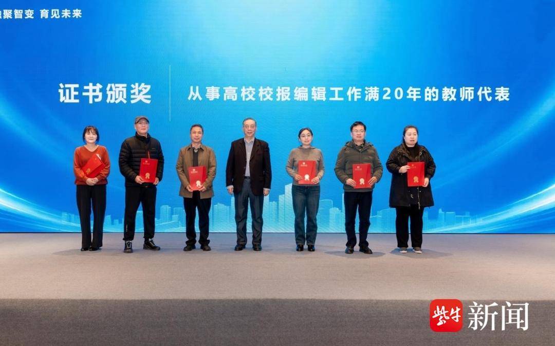 年会上,从事高校校报编辑工作满20年、从事高校新媒体编辑工作满10年,2025年度教育新闻出版业榜样编辑、榜样审稿人,2024年度教育融媒体典型案例项目、案例作品,2025年高校校报融合传播创新大赛的获奖单位和个人代表受到表彰。
